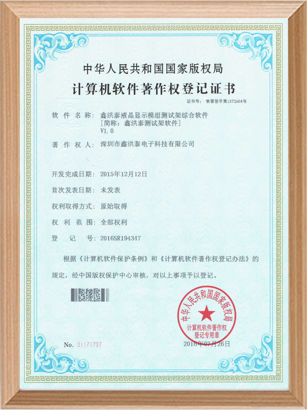 軟件著作權(quán)證書