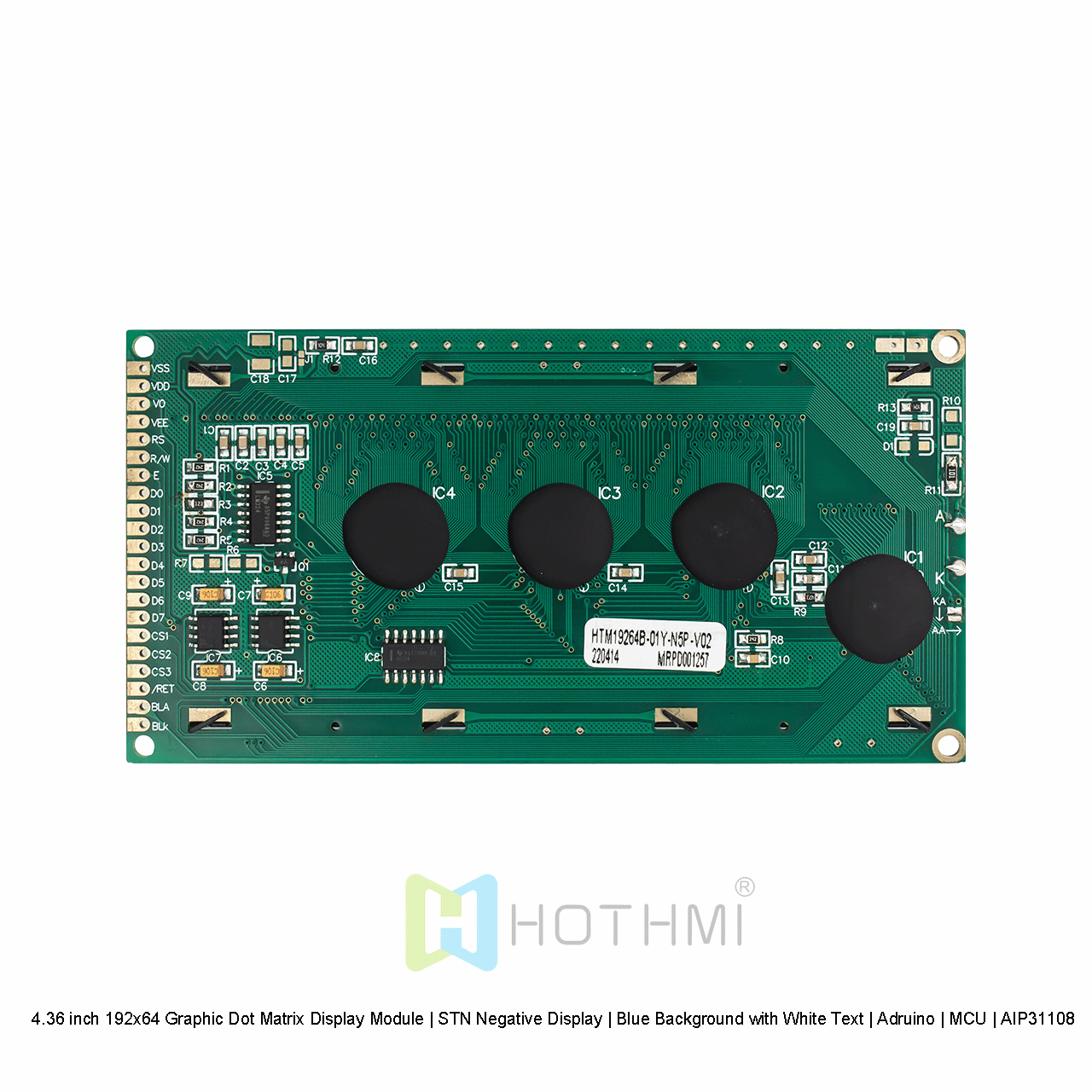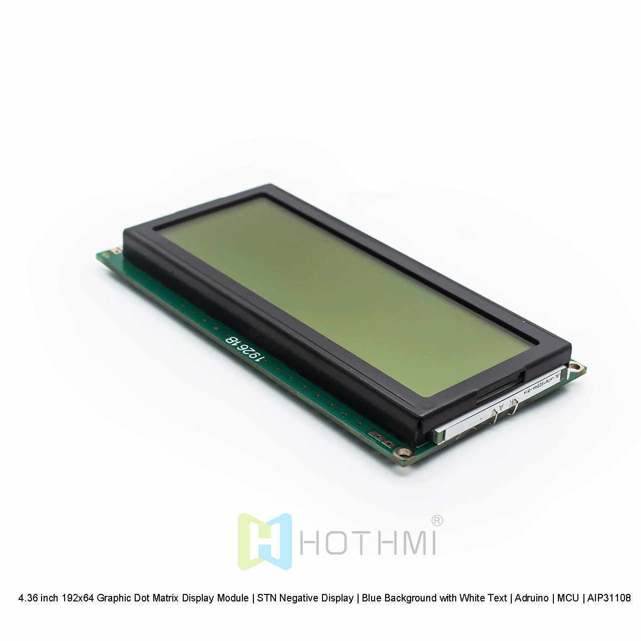 4.36寸192x64圖形點陣顯示模塊在藍色背景上顯示白色像素。這款全透式 LCD 顯示屏經(jīng)過精心設(shè)計,LCD 內(nèi)置強背光,可提供高對比度并向觀看者顯示清晰的圖形。這種先進的顯示技術(shù)可確保無論照明條件如何,顯示屏始終易于閱讀。