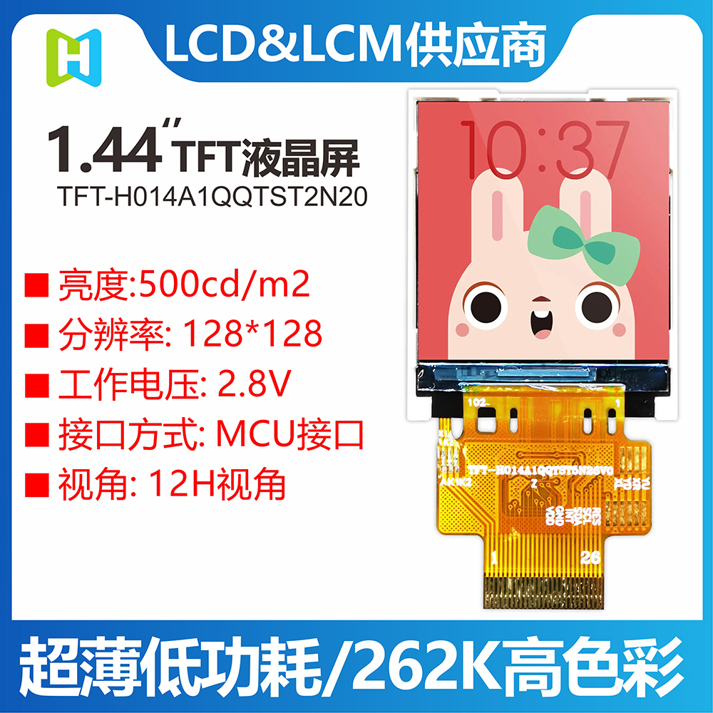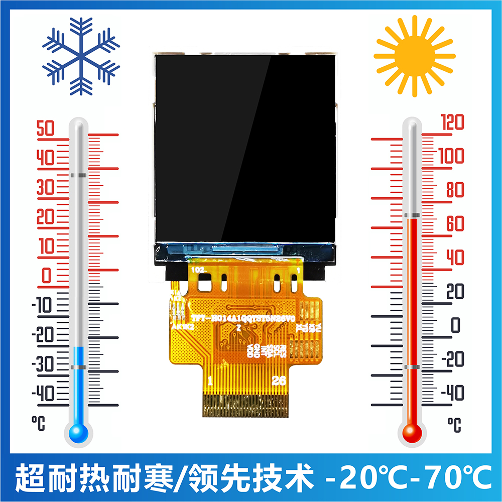 產(chǎn)品描述 TFT-H014A1QQTST5N26 是一款 1.44 英寸全彩 TFT LCD 顯示模塊,分辨率為 128x128 像素,縱橫比為 1:1。 該TFT模塊采用ST7735S驅(qū)動(dòng)IC,支持MCU接口。 采用IPS面板的TFT模組具有廣視角優(yōu)勢(左80度/右80度/上80度/下80度),對比度典型值800:1,該模組亮度高達(dá)500尼特( 典型值)。 模塊工作溫度范圍-20℃~+70℃,儲(chǔ)存溫度范圍-30℃~+80℃