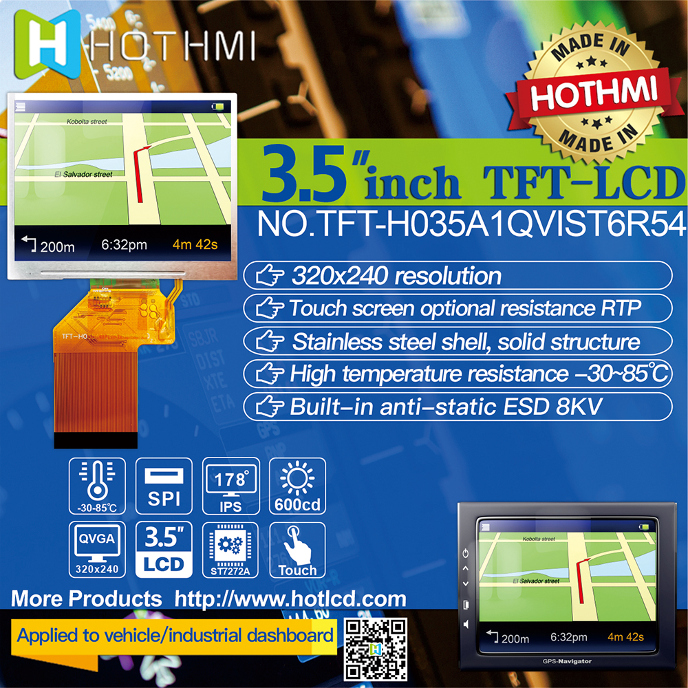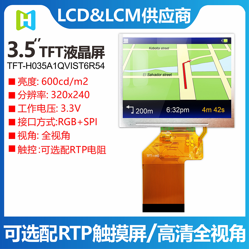 • 型號: 3.5寸TFT橫屏︱320*240分辨率︱4:3寬視角︱TFT-H035A1QVIST6R54