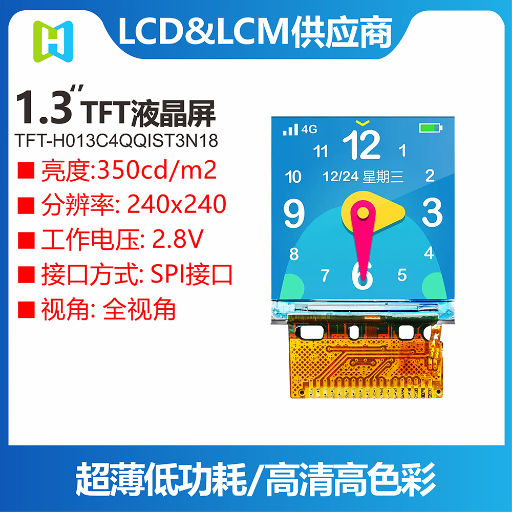 TFT-H013C4QQIST3N18是一款1.3英寸全彩TFT液晶顯示模組,分辨率為80x160像素,寬高比為1:2。 TFT模塊采用ST7789H2驅(qū)動(dòng)IC,支持SPI接口。 采用IPS面板的TFT模組具有廣視角優(yōu)勢(shì)(左80度/右80度/上80度/下80度),典型對(duì)比度為800:1,模組亮度高達(dá)400尼特( 典型值)。 模塊工作溫度范圍-20℃~+70℃,儲(chǔ)存溫度范圍-30℃~+80℃。