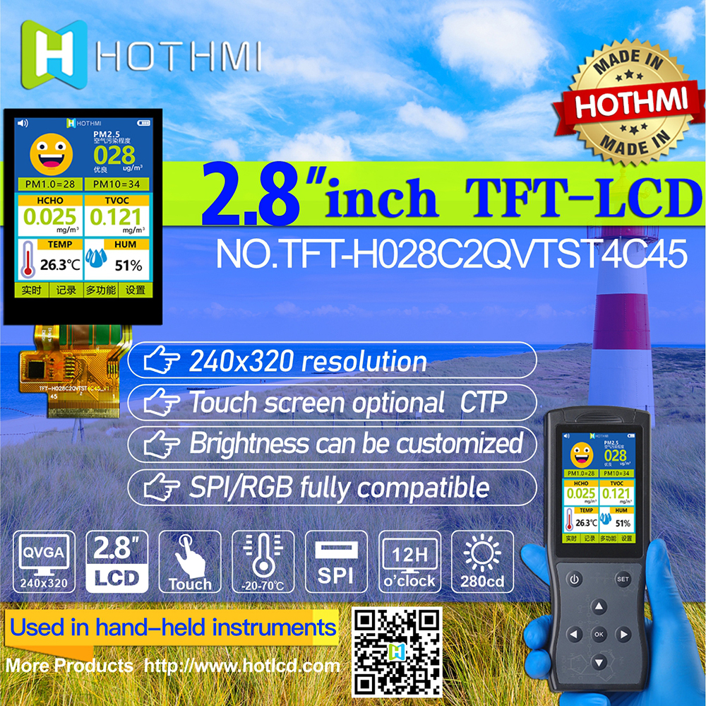 2.8寸TFT彩屏 /240*320分辨率 /12H White LED /RGB/SPI/MCU接口 /TFT-H028C2QVTST2C45/應(yīng)用于手持儀器儀表