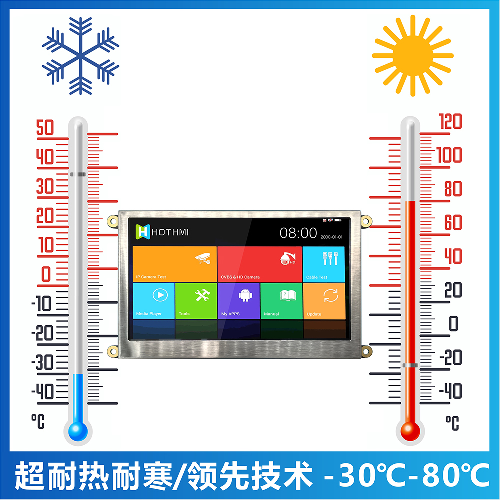 TFT043T6SVHDVN20Z的LCM(VDD)電源電壓為5V使用防眩光玻璃表面,長寬比為16:9,對比度為800:1 (典型值)。工作溫度范圍-30℃~+80℃,儲存溫度范圍-30℃~+80℃。