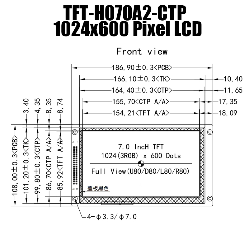 • 型號: 7寸電容式觸摸彩屏 IPS全視角高亮度 TFT LCD 彩色液晶顯示屏帶控制器板1024x600 HTM-H070A2-RGB-B06-CTP