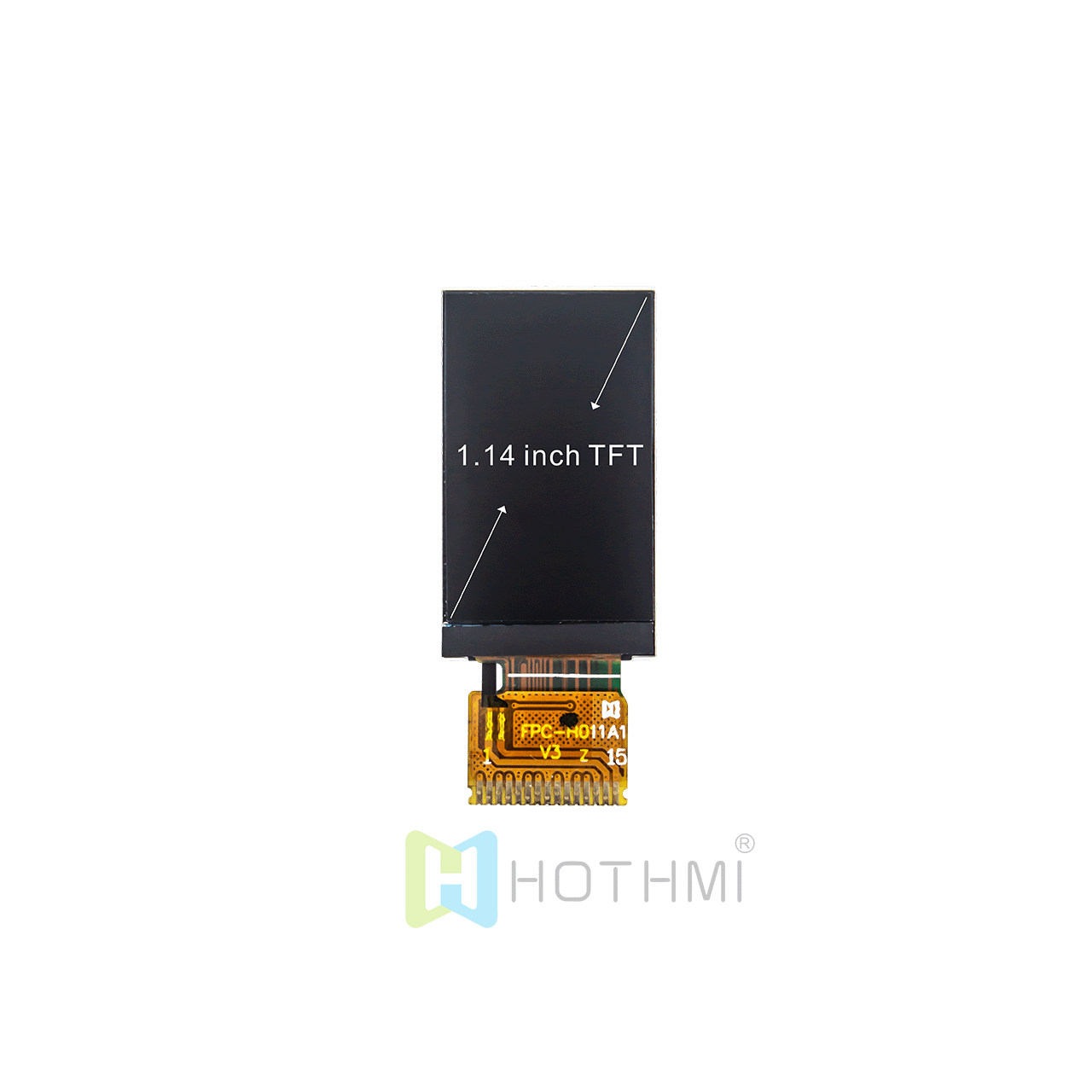 TFT-H011A1QCIFT5N15 is a 1.14-inch IPS TFT bar LCD screen with a resolution of 135x240, built-in JD9852 controller, optional touch screen, high picture quality, IPS wide viewing angle, MIPI interface, 65K/262K true color, FPC connection (optional connector), 1.8V~2.8V voltage, and supports vertical display. All materials meet environmental protection requirements and RoHS standards. This module is widely used in various instruments, smart devices, etc., and is suitable for 8051 PIC, AVR, ARDUINO, ARM, Raspberry Pi, Android motherboard, RK motherboard and other single-chip development platforms.