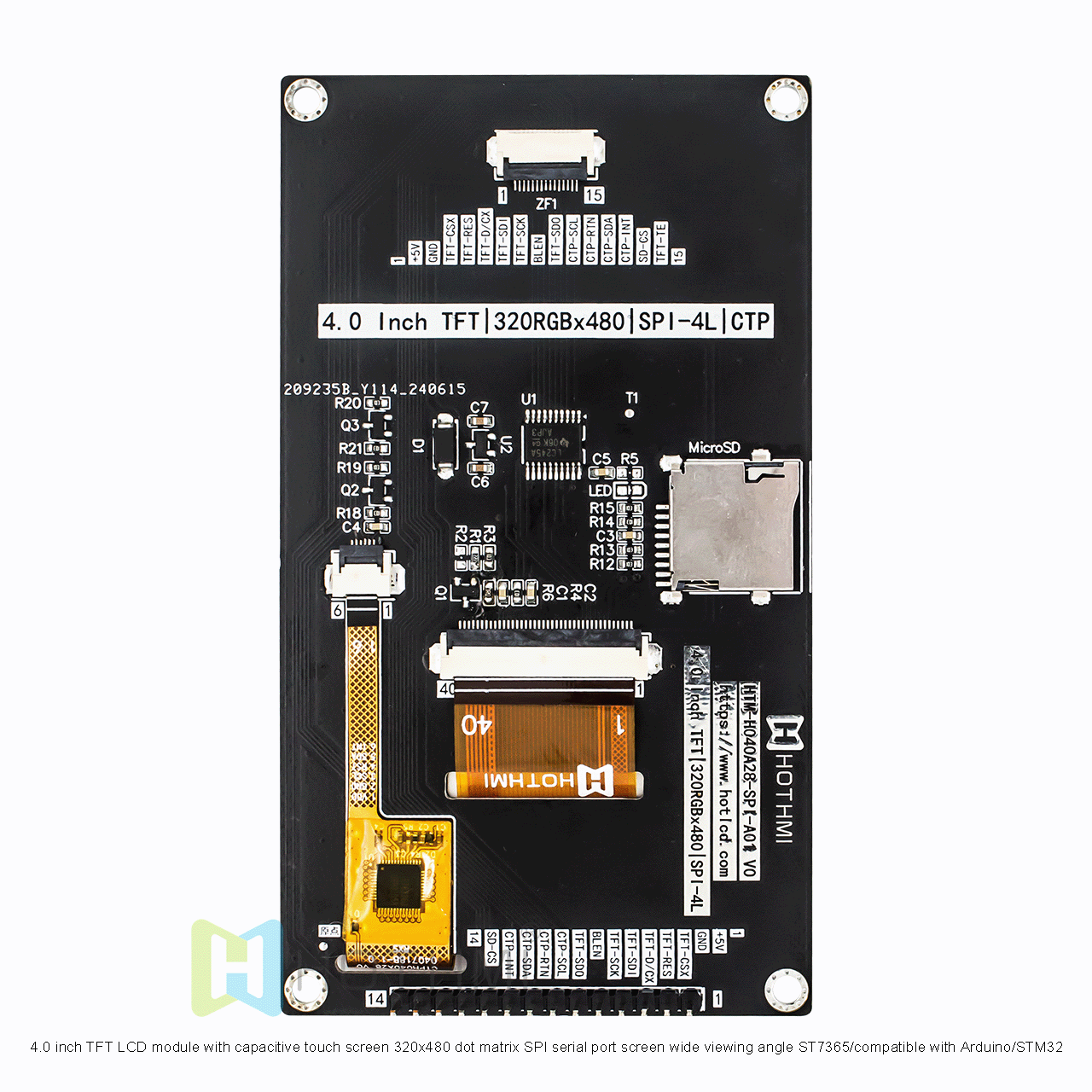 HTM-H040A28-SPI-A01C是一款4.0英寸IPS帶板液晶模組-電容觸摸顯示屏,分辨率為320X480像素。它使用ST7365顯示驅(qū)動IC,插入式PIN針,也可以兼容FPC排線,并可與匹配的連接器一起使用。該顯示器中使用的寬視角(U70/D60/L70/R70)技術(shù)提供了全視角和出色的色彩表現(xiàn),使您能夠輕松地從各個角度觀看而不會失真。該顯示器具有500:1的高對比度,能夠顯示深黑色和生動的顏色。亮度高達330cd/m2,它可以在陽光下閱讀。FPC連接(可選連接器),3.3V電壓,支持垂直屏幕顯示。所有材料均符合RoHS環(huán)保標(biāo)準(zhǔn)。該模塊廣泛應(yīng)用于各種儀器、工控機、智能設(shè)備等。適用于C8051/Arduino/STM32等多種微控制器開發(fā)平臺。