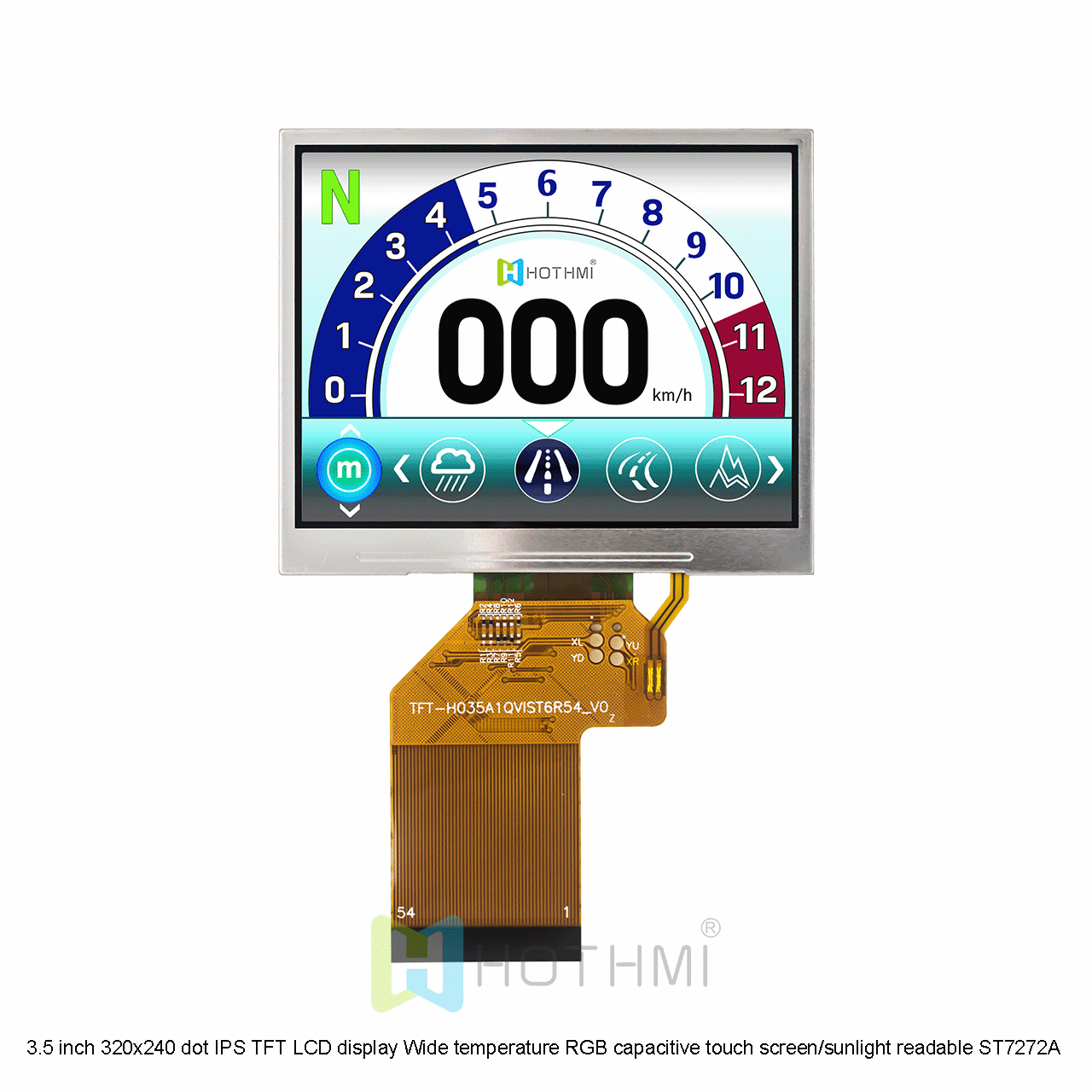 TFT-H035A1QVIST6N54是一款3.5英寸 IPS TFT 顯示屏,分辨率為 320x240 像素。它采用ST7272A顯示驅(qū)動器 IC ,使用RGB或4串行 SPI 接口進行通信。FPC 是與驅(qū)動板之間的接類型,不需要連接器。只需將 FPC 直接插接到 PCB 上或使用我們的可選焊接 FPC 連接器進行連接,易于插入或移除。