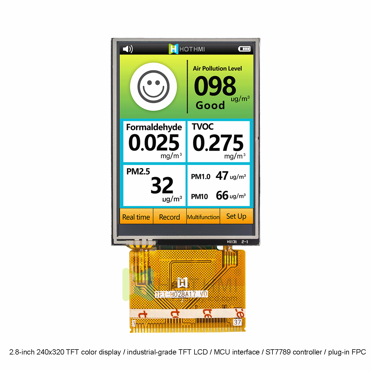 2.8英寸 240x320TFT彩色顯示屏/工業(yè)級(jí) TFT LCD/MCU接口 /ST7789控制器/插接型FPC TFT-H028A17QVTST2N37是一款2.8英寸 TFT LCD 顯示屏,分辨率為240x320 像素。該顯示屏具有很高的對(duì)比度,能夠呈現(xiàn)深黑色和鮮艷的色彩。這款產(chǎn)品最佳觀賞角度是12:00。