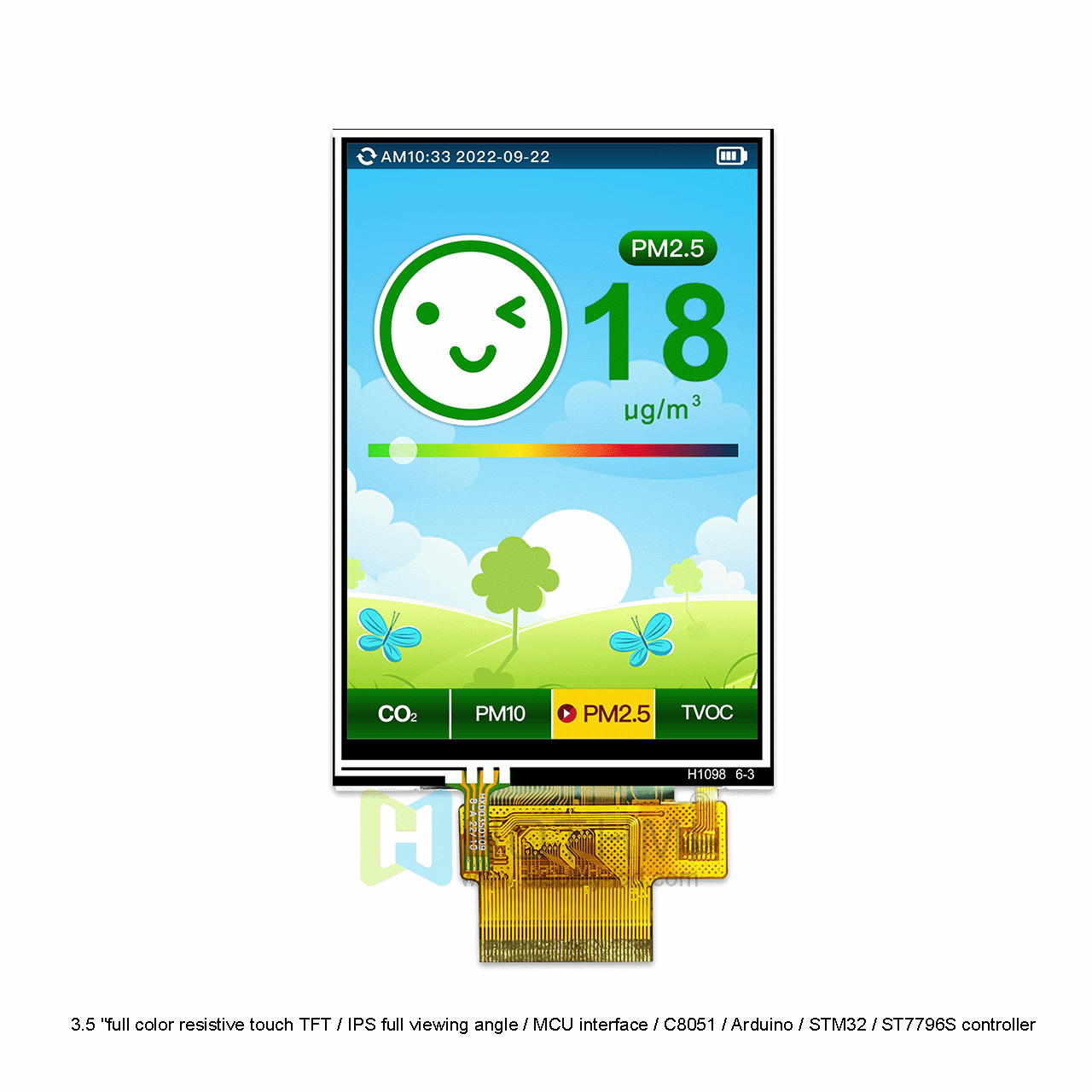 3.5寸 320x480點(diǎn)陣TFT液晶顯示屏/3.5“全彩電阻觸摸TFT/IPS全視角/MCU接口/C8051/Arduino/STM32/ST7796S控制器 型號TFT-H035A5HVTST2R45是一款I(lǐng)PS全視角的顯示屏,畫質(zhì)高,對比度高,色域廣。它的分辨率320x480,內(nèi)置ST7796S控制器,這個型號是帶有電阻觸摸功能的,支持MCU接口,65K/262K真彩,F(xiàn)PC連接(可選連接器),3.3V電壓。Hot Display的顯示屏工作溫度范圍廣,這款產(chǎn)品的工作溫度范圍為-20 ℃~ +70 ℃。 所有材料均符合環(huán)保要求和 RoHS 標(biāo)準(zhǔn)。 該模塊廣泛應(yīng)用于各種儀器儀表、智能設(shè)備等,適用于Arduino等系統(tǒng)。