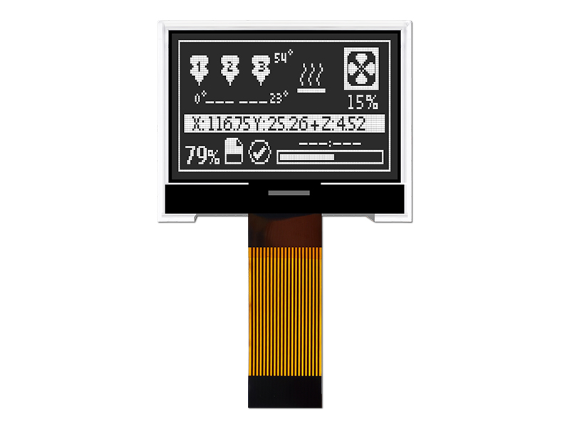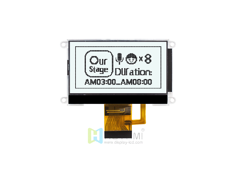 HTG12864N01A-MCU8080 COG 128x64 67.8x42.0x5.3 63.0x33.0 55.01x27.49 6H 白光 FPC-20PIN MCU -20~70℃ 3.3V ST7567