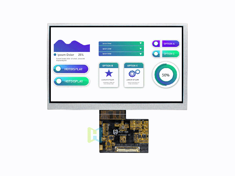 | 7寸TFT彩屏 LCD IPS 陽光下可讀顯示器 TFT LCD 顯示器制造商 TFT-070A02WSIF8N50 | TFT橫屏 | 1024x600 |