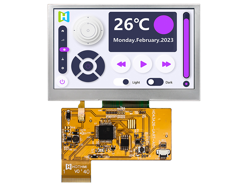 | 4.3寸 UART 電阻式觸摸屏 TFT LCD 800x480 顯示屏帶 LCD 控制板智能屏 HTM-H043A2-UART | TFT帶板模塊 | 800x480 |
